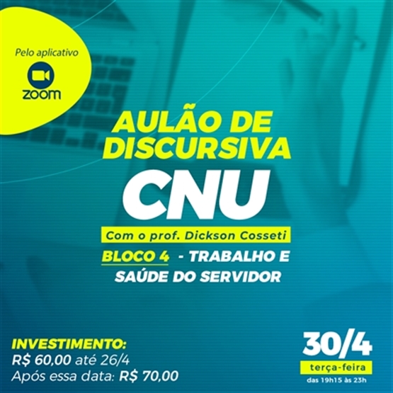 Está se preparando para o Concurso Unificado Nacional (CNU) e deseja aprimorar suas habilidades na resolução da questão discursiva do Bloco 4? Este Aulão é perfeito para você! Com o renomado professor Dickson Cosseti, você terá a oportunidade de compreender tudo sobre a prova discursiva em um único encontro. Além disso, é a chance ideal para aqueles que não tiveram tempo de se preparar adequadamente para essa etapa do concurso.