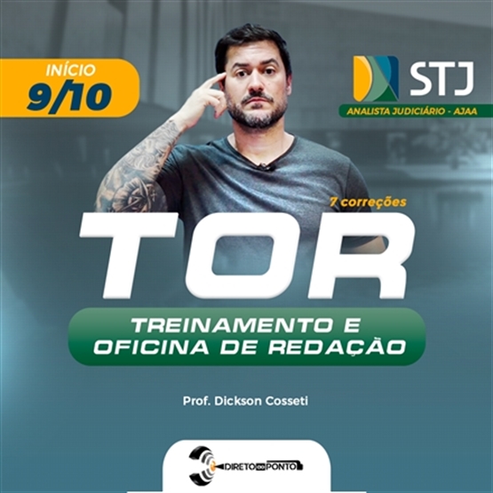 Se você está se preparando para o STJ e tem como alvo o cargo 1, o Treinamento e Oficina de Redação (TOR) é o que faltava para você alcançar a sua aprovação. Desenvolvido com precisão e eficiência pelo professor Dickson Cosseti, o TOR é um investimento essencial para quem almeja se destacar nesse desafiante processo seletivo.